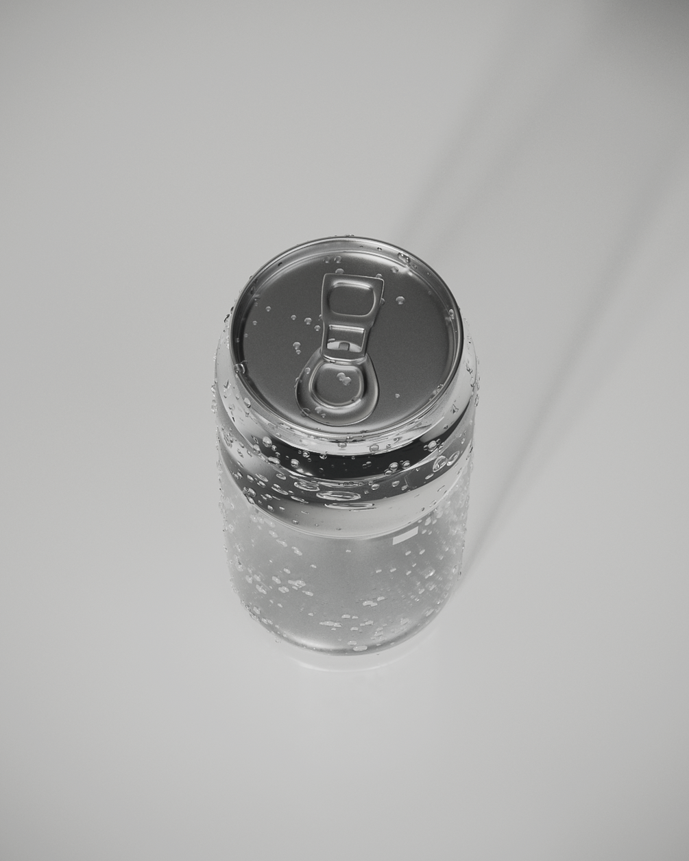This reusable product visualization scene features a transparent beverage can built in Cinema 4D with Redshift, complete with modeled geometry, procedural glass enhanced with texture maps, water shaders enhanced with texture maps, aluminum textures (base color, normal, roughness), HDRI lighting, and three preconfigured camera angles.