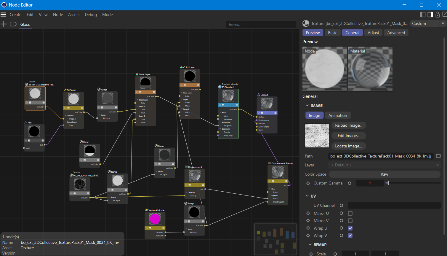 - Procedural glass shader with node-based transparency and distortion