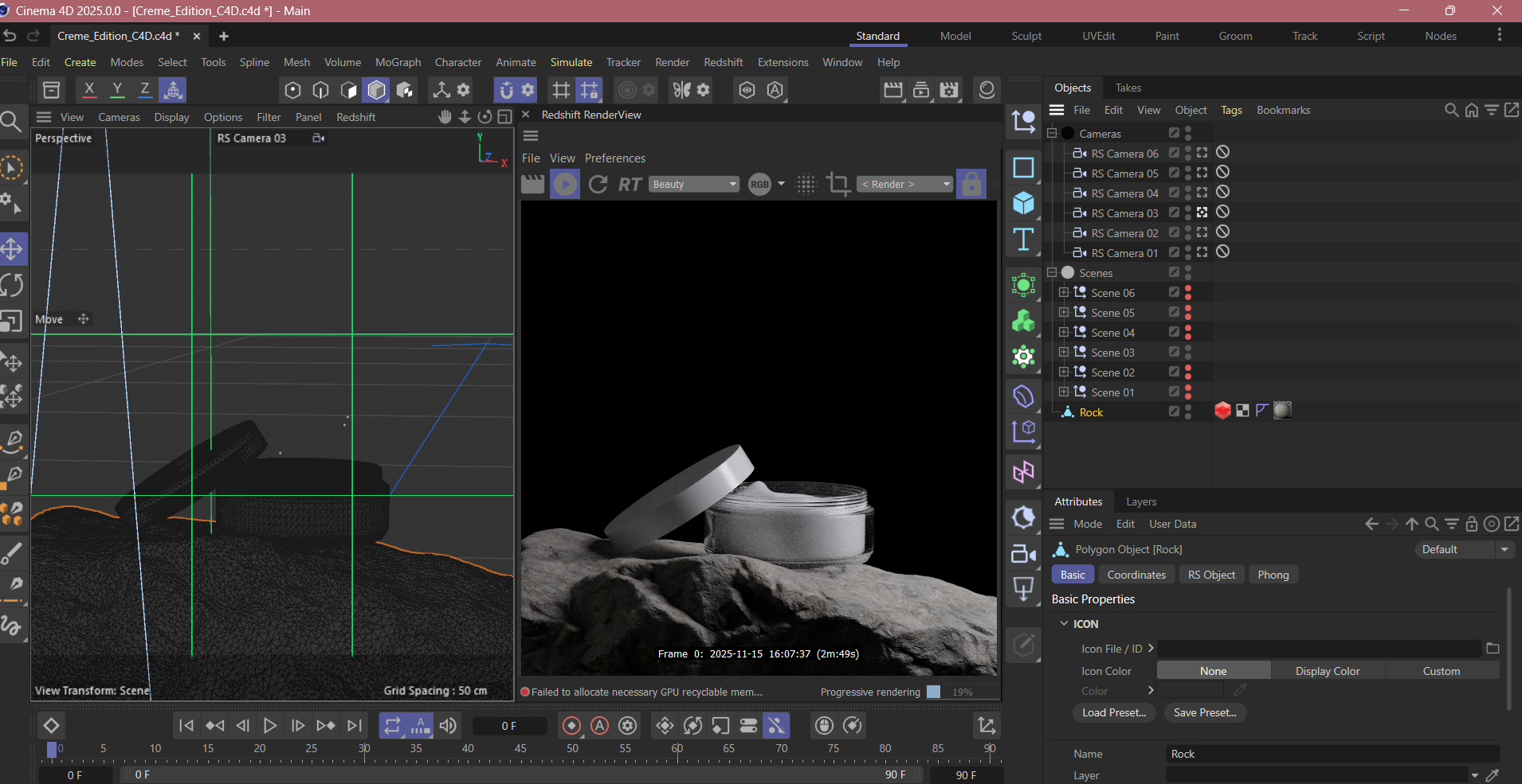 Professional 3D scene pack ready to render in Redshift. Includes realistic materials, optimized lighting, and 6 final renders on a natural rock surface. Perfect for product visualization, mockups, or technical learning.
